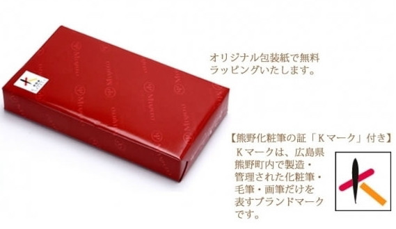 創業半世紀を超える熊野町内製造にこだわったメーカーです。 江戸時代末期から始まったといわれる伝統的工芸品・熊野筆の技術を活かし、新たな熊野化粧筆の技法を使用しました。 毛先をカットしない、山だしという方法により、肌触りがよく化粧ノリも優れています。 原毛から吟味し、継承した伝統技術に新たな技法を生かしつつ、創意工夫し1本1本職人の手で製造しています。 チークパウダーブラシ(チークにもパウダーにも使用できます。) 灰リスと粗光峰の混毛です。 シルクのような灰リスの柔らかさに、粗光峰をブレンドすることにより、コシが強く粉含みのいい、より化粧しやすい筆に仕上げました。 シャドウブラシ・携帯リップブラシ 毛先はコシが強く、耐久性もあります。 毛先のまとまりもよく、発色・粉含みともに優れており、リップやアイライナー・アイシャドウにも使用できるため、幅広く利用されています。 【注意事項】 お手入れの方法は、同封の使用方法説明書を参照。 チーク 【毛材質】山羊(粗光峰)/灰リス混毛 【全長】13cm 【穂先の長さ】3.8cm 【重さ】16g シャドウブラシ 【毛材質】セーブル(イタチ科) 【全長】11.5cm 【穂先の長さ】1.5cm 【重さ】4.5g 携帯型リップブラシ 【毛材質】セーブル(イタチ科) 【全長】9.5cm 【穂先の長さ】1.0cm 【重さ】4.2g 【受賞歴】 ・熊野筆 洗顔ブラシ【特許第6128364】取得 2017年 ・【日本ギフト大賞 2015 広島賞】2015年 ・【クール ジャパン フェスティバルで紹介】2012年 【提供元】 有限会社 宮尾産業 (TEL 082-854-0337)