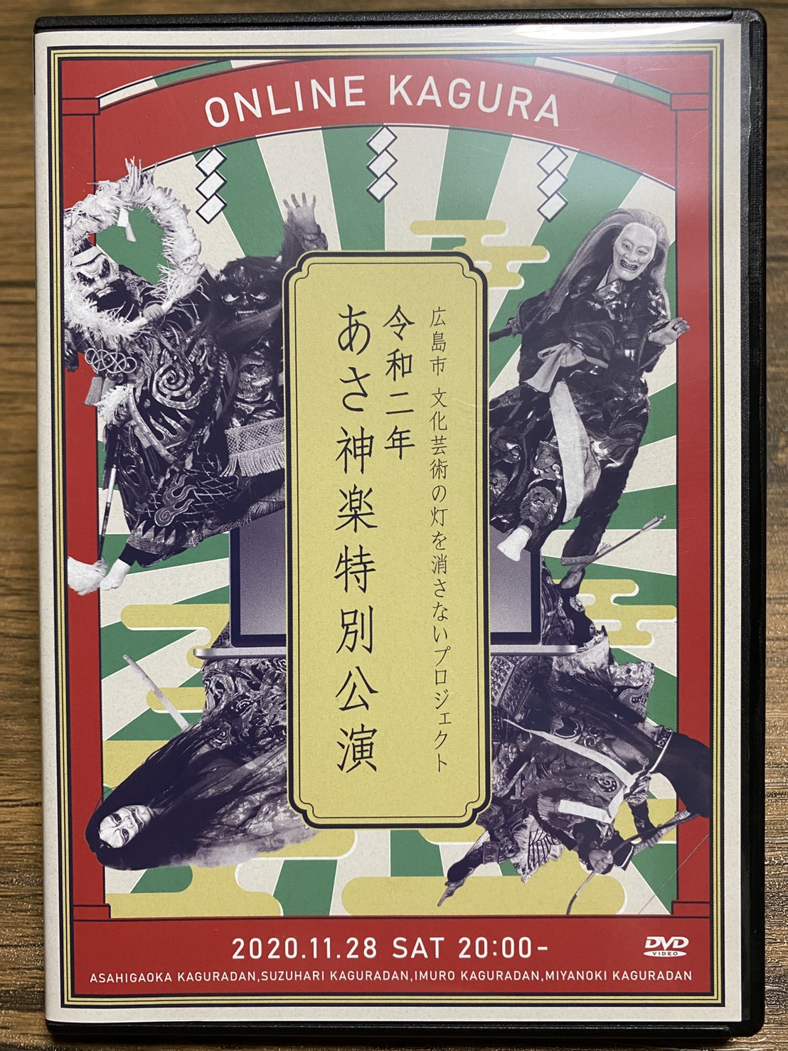 このDVD&Blu-rayセットは、北広島町に隣接する広島市安佐地域で令和2年に無観客開催された「あさ神楽特別公演」の様子を収録したもの。安佐地域の4団体が出演し、コロナ禍にあっても「文化芸術の灯を消さないプロジェクト」として実施されたものです。