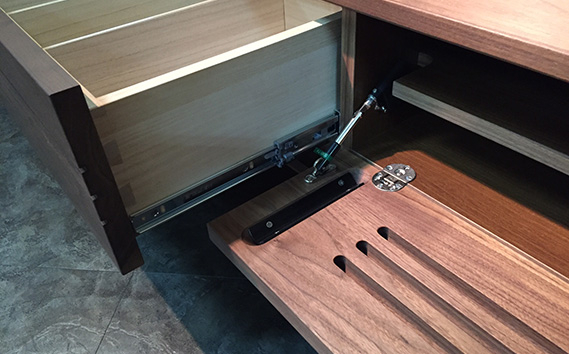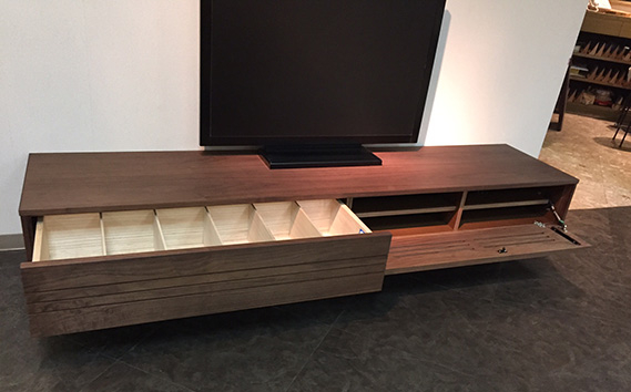 ウォールナットの無垢材を使用したTVボードで環境に配慮した自然塗料のオイル仕上になっています。