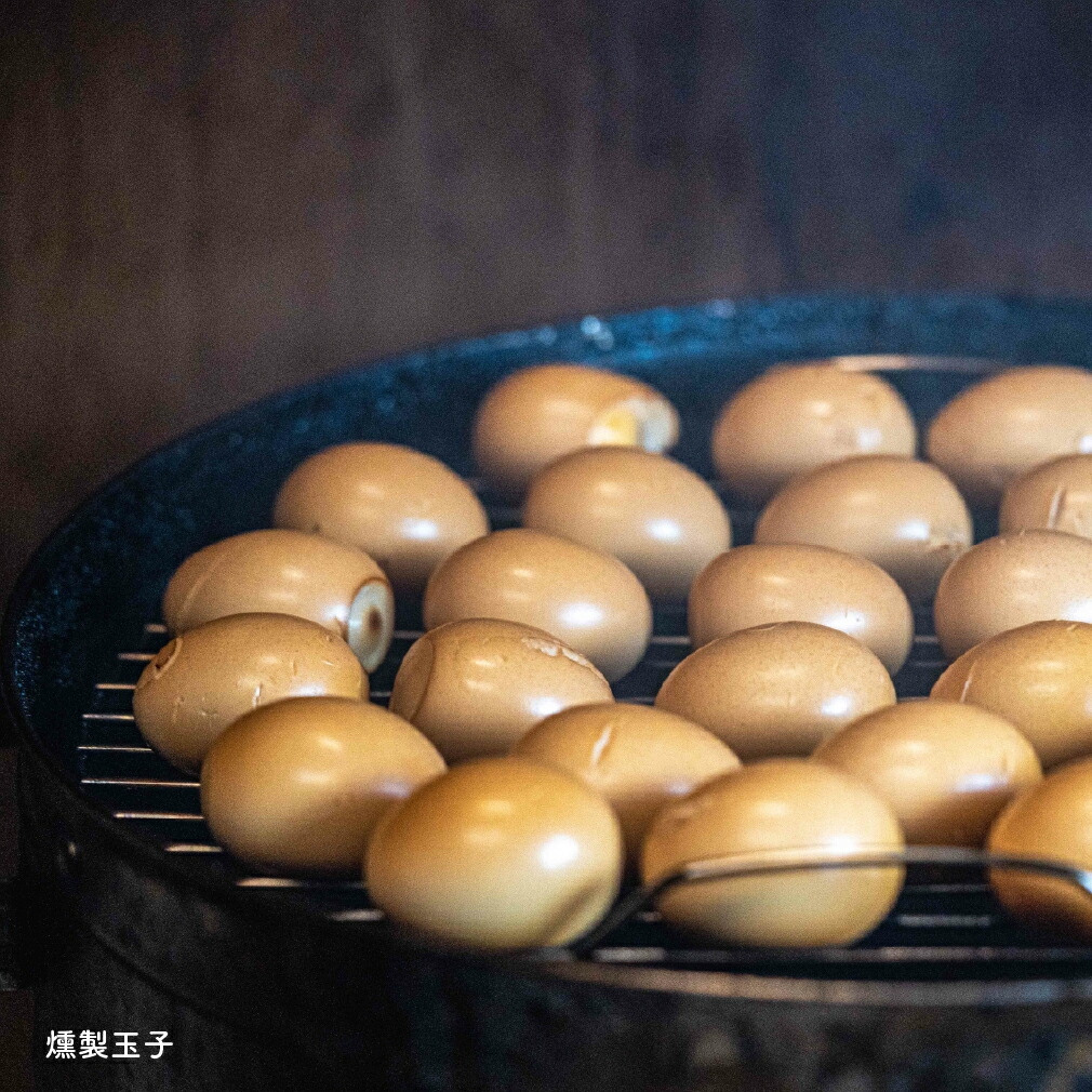 ガーデンテラスキミ一番人気!世羅産卵を使用し、半熟玉子をだし醤油に一晩漬けこみ燻製しました。少し強火の熱燻製で白身はしっかり、黄身は柔らかいのが特徴です。