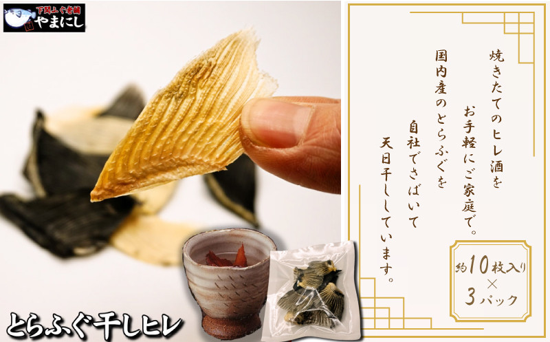 焼きたてのヒレ酒をお手軽にご家庭で! とらふぐ 干しひれ 10枚入 × 3パック ヒレ酒 用 ふぐ 日本酒 熱燗 酒 下関 山口