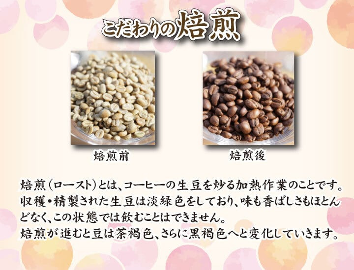 コーヒー豆の華やかな香りと焙煎後の味わいの変化をお楽しみください。