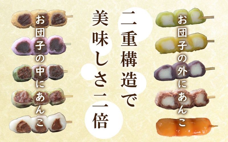 当店の「幸ふくだんご」はお団子の中にあんこ、お団子の外にあんこ、