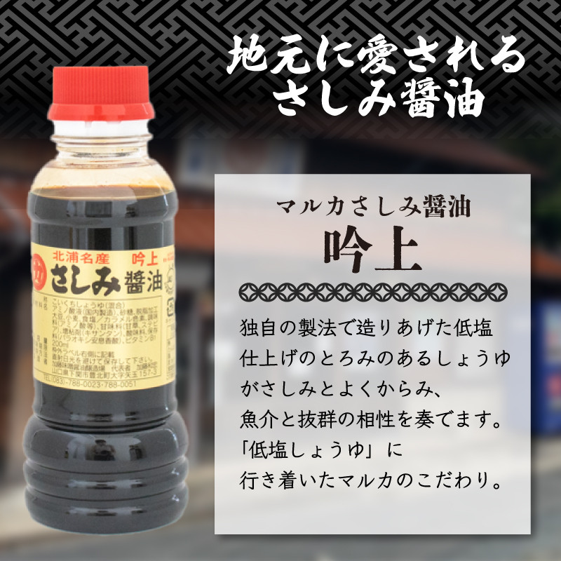 昔ながらの伝統を守りながら醸造されたマルカ自慢のさしみしょうゆ。