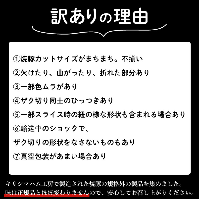 キリシマハム工房で製造された焼豚の規格外の製品を集めました。