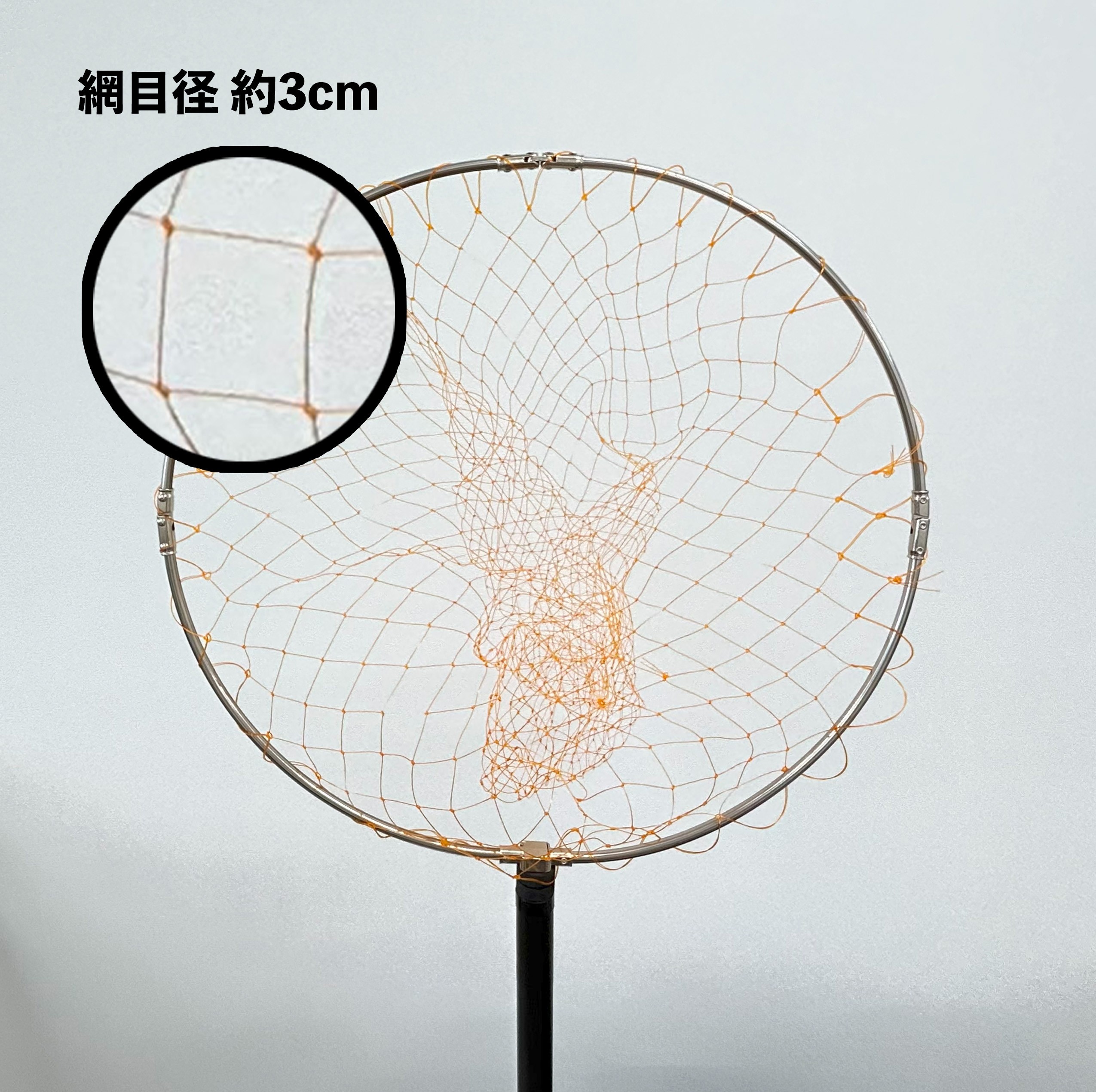 | 容量 | 全長:500cm (柄長-450cm/枠-45cm) 継数:10本 自重:512g 仕舞寸法:61cm 元径:31.2mm 枠:45cm 玉枠ネジサイズ:W1/2(1/2inch・約12mm) 原料:カーボン |