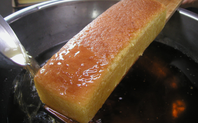 【ブランデーケーキ】昭和31年に福岡県知事賞を受賞した日より歴史を刻み続けて半世紀。ひとつひとつ丁寧にブランデーシロップを手酌でかける素朴なブランデーケーキは、時を重ねて一つの個性となりました。特に1~2週間を目安に上下を返す保存方法は、お客様がご購入後もお召し上がりいただくまで、お客様にその作業を繰り返していただくというワガママなブランデーケーキです。令和元年10月、農林水産省の主催するフードアクションニッポンアワード2019を受賞。熟成をすることで日を追うごとに美味しさが増してくるという 賞味期限の概念を覆すところが特に評価を受けました。