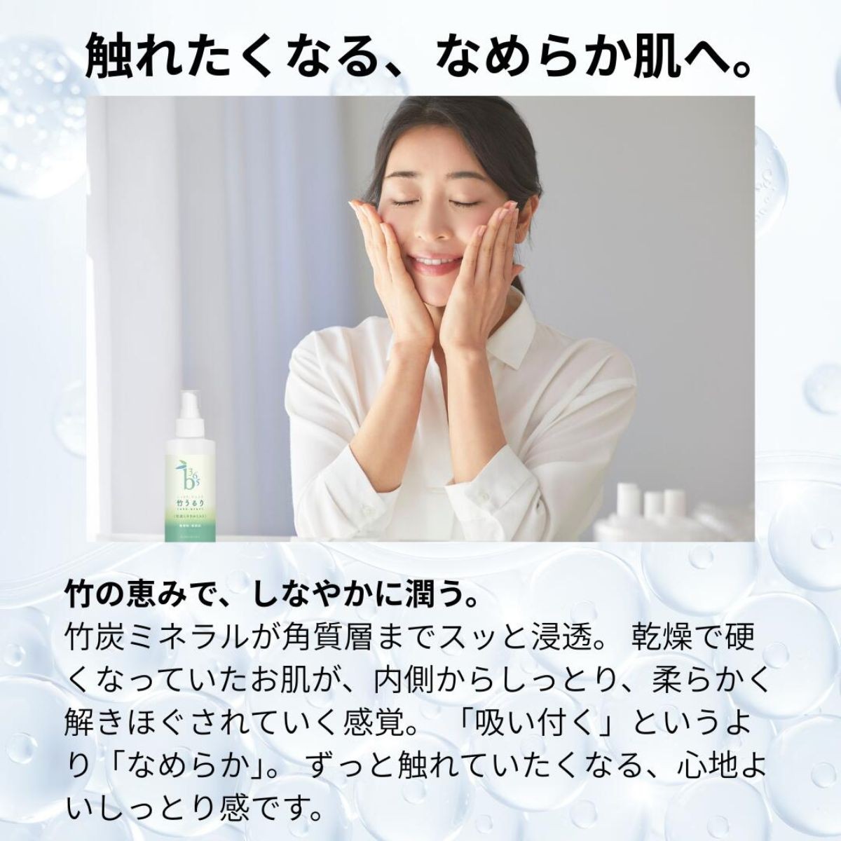 乾燥肌や敏感肌にお悩みの方の声から生まれた『竹うるり』は、無添加(香料・着色料・保存料等不使用)にこだわり、驚くほどの保湿力が特徴です。