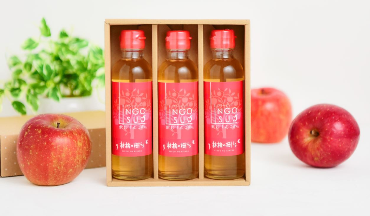 山口市徳佐の自家農園で栽培したりんごを100%使用した飲みやすい加工酢です。