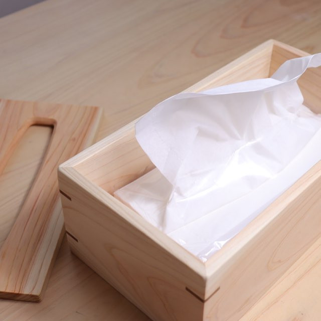 山口市徳地にある製材所から地元の木材を仕入れて製作したヒノキのティッシュケースです。
