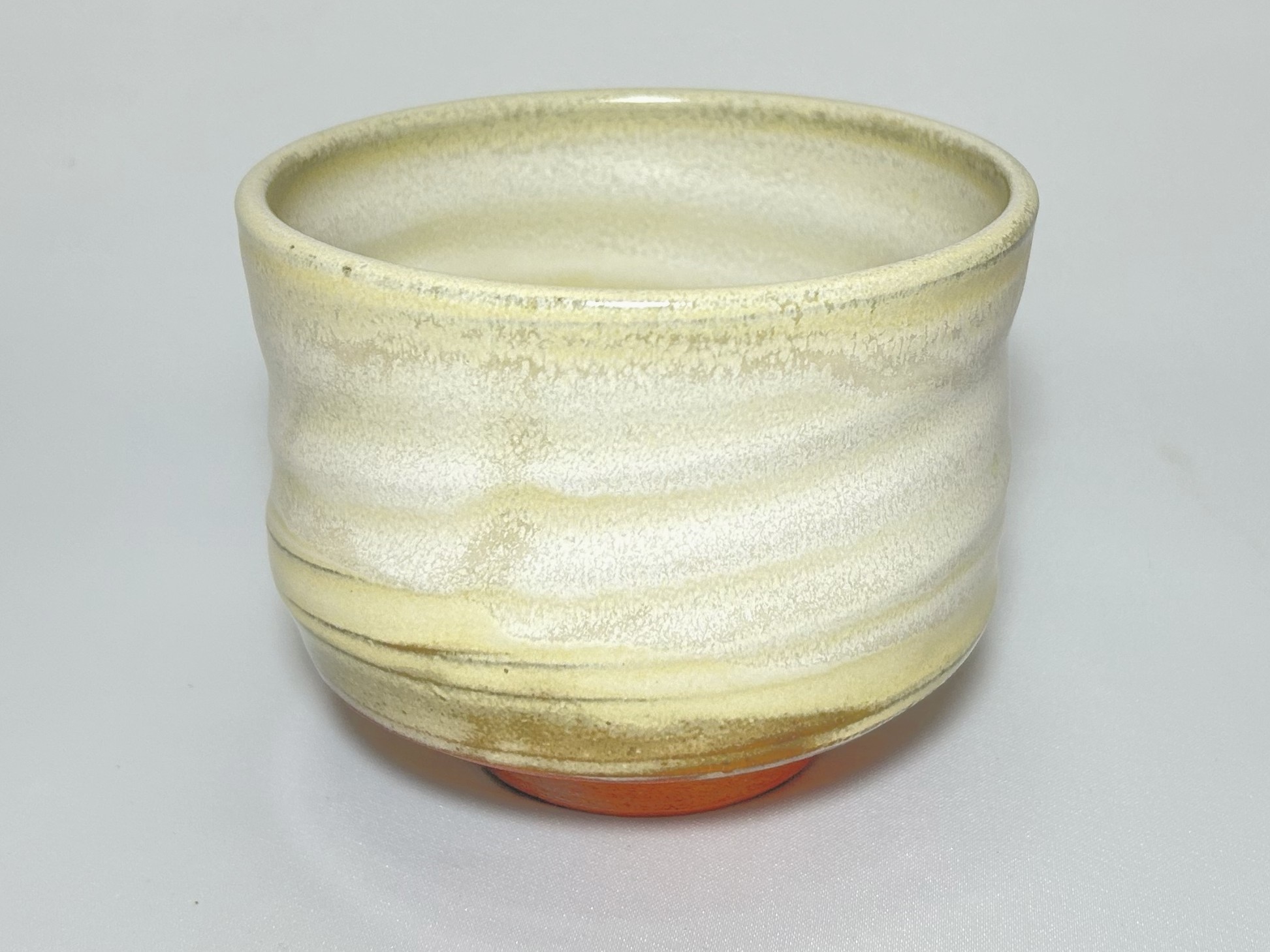 陶房で時間をかけ精製した自然藁釉によるもので、窯内高温時に起きる窯変作用が深みのある筒型茶盌にしています。