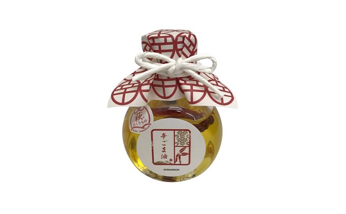 当店定番のごま油3種類、萩産の赤唐辛子と赤ニンニクを使った辛胡麻油、ふりかけ、ごまから金のセットです。