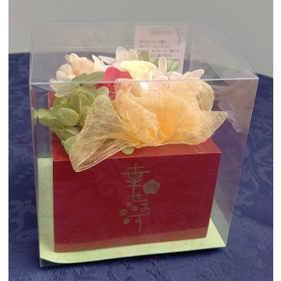 「幸せ枡フラワー」は幸せ枡の枡の中にあなたの幸せが増します思いを込めて、プリザーブドフラワーを使用して作成しています。