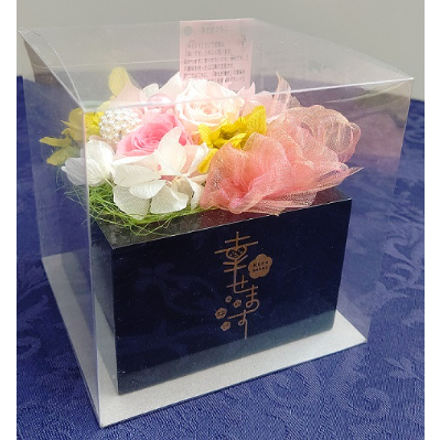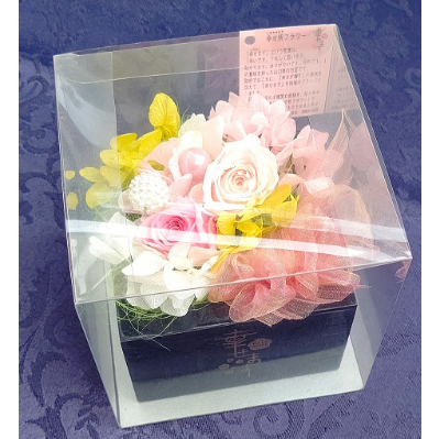 「幸せ枡フラワー」は幸せ枡の枡の中にあなたの幸せが増します思いを込めて、プリザーブドフラワーを使用して作成しています。