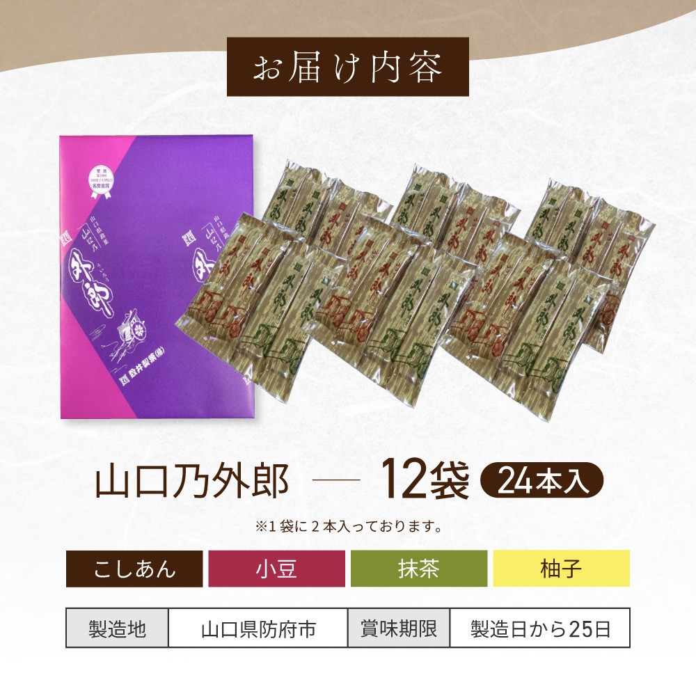 山口伝統のわらび粉が生む、ぷるぷる・もちもちの食感と優しい甘みを防府市からお届け 山口乃外郎 12袋24本入 数井製菓株式会社 山口県 防府市 A-B05 外郎 山口 ういろう 和菓子 老舗 詰め合わせ 贈り物 ギフト もちもち わらび粉 小豆