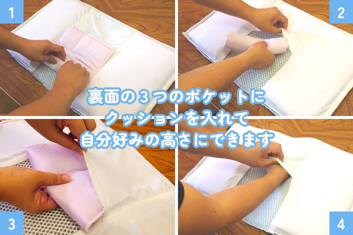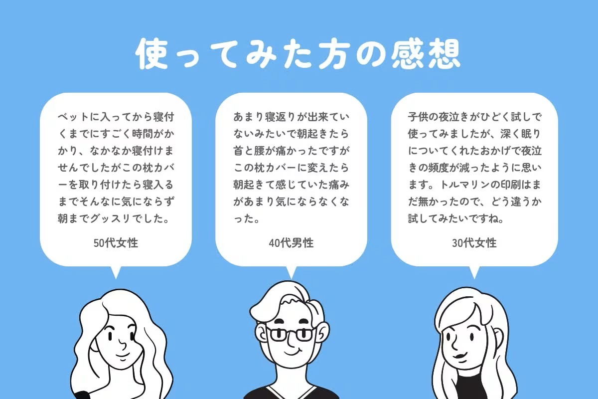 よく眠れず夜中に目が覚めたり朝起きてもすっきりしない毎日を過ごしていて色んな枕を試したけどあまり効果がなくてという話を従業員から聞き、自分が使っている枕にかぶせるカバーで自分に合う枕にすることが出来ないかというところから、調べていく内に世の中でも同じように悩んでいる人が多かったことを知り、使い慣れた枕に被せるだけで満足できる「あなただけの枕カバー」というコンセプトの基開発していきました。