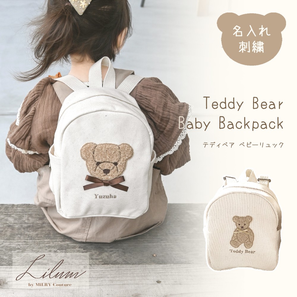 世界に一つ、お名前刺繍のテディベアリュック。 お名前刺繍入り もこもこテディベア ベビーリュック 株式会社リリーレーヴ 山口県 防府市 B-B17 名入れ 刺繍 出産祝い 1歳 誕生日 くま もこもこ