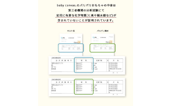 出産祝いなどのギフトにもオススメなbaby canvasのパリパリおもちゃです!