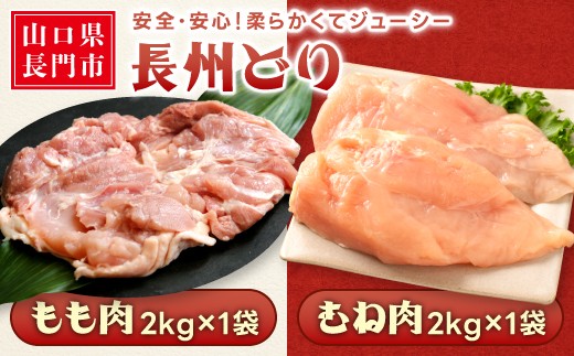 山口県産 長州どり もも肉・むね肉 セット たっぷり合計4kg‼【…