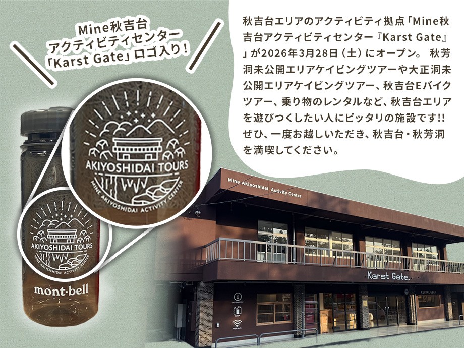 本体には秋吉台エリアのアクティビティ拠点「Mine秋吉台アクティビティセンター「Karst Gate」のロゴをプリントし、2026年3月開業の新たな拠点とのつながりも感じられるデザインに。