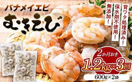 NEW 【定期便/3か月】バナメイむきえび 600g(2袋)×3回 計3.6kg …