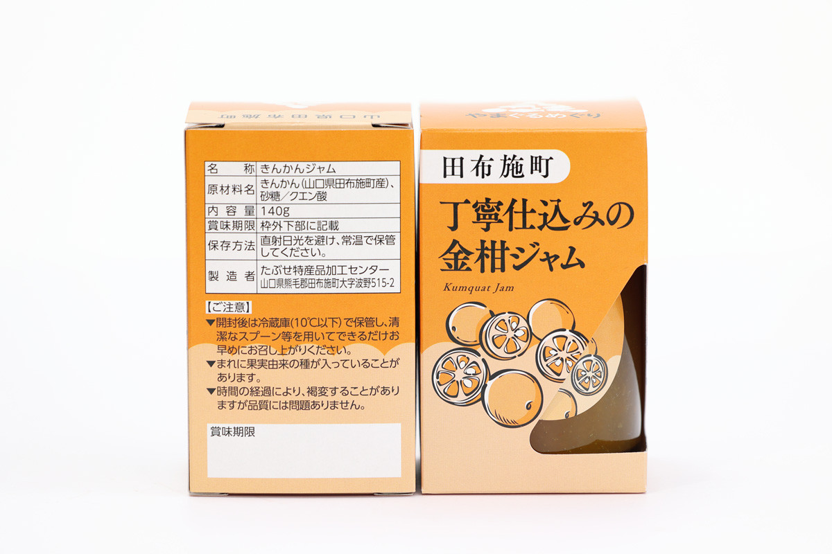 太陽をいっぱい浴びて育った金柑を田布施町のお母さんたちが種を丁寧に取り除き美味しいジャムに仕上げました。