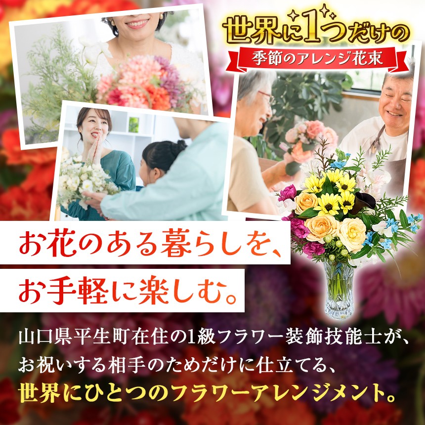 1級技能士が彩る花のある暮らし。季節のアレンジメント定期便(年4回) 【定期便】 年4回 1級フラワー装飾技能士 おまかせ 花束 季節 の フラワーアレンジメント | 季節 花 生花 ブーケ 季節 アレンジ フラワー アレンジメント 贈り物 プレゼント フラワーギフト ギフト 山口県 平生町