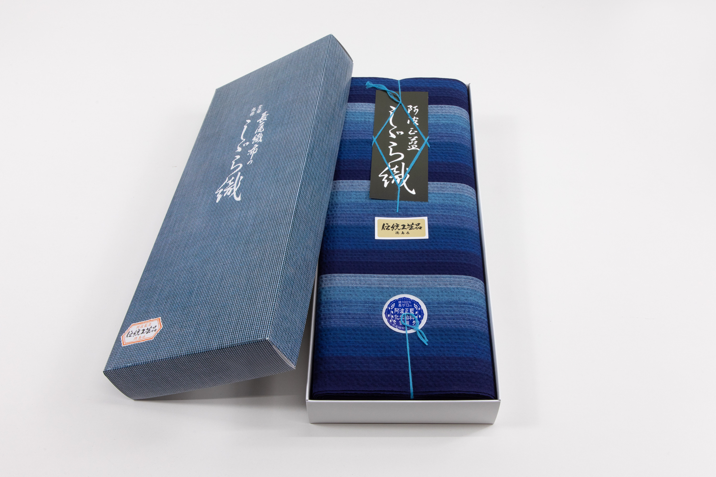 古くから伝承されているしじら織に改良を重ね、阿波特産の藍染料を使用し,幾度の試行錯誤の結果、現在のしじら織技法に成功しました。