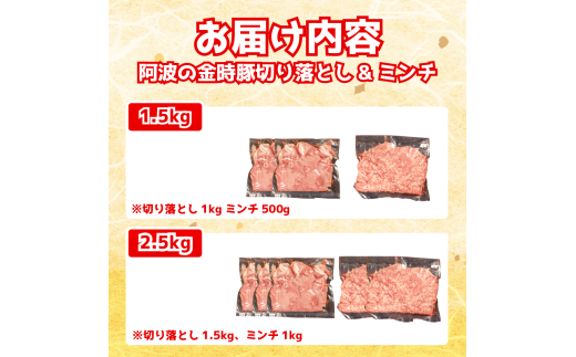 毎日の食卓にご褒美を。旨みたっぷり金時豚 阿波の金時豚 豚肉 切り落とし ミンチ セット 選べる 容量 1.5kg 2.5kg (1パック500g) ブランド豚 金時豚 小分け 真空パック 冷凍 国産 赤身 ウデ モモ 生姜焼き 野菜炒め 豚汁 豚丼 中華炒め 豚こま 鍋 ポークカレー カレー 肉じゃが 回鍋肉 内祝い ギフト 贈り物 冷凍 徳島 阿波