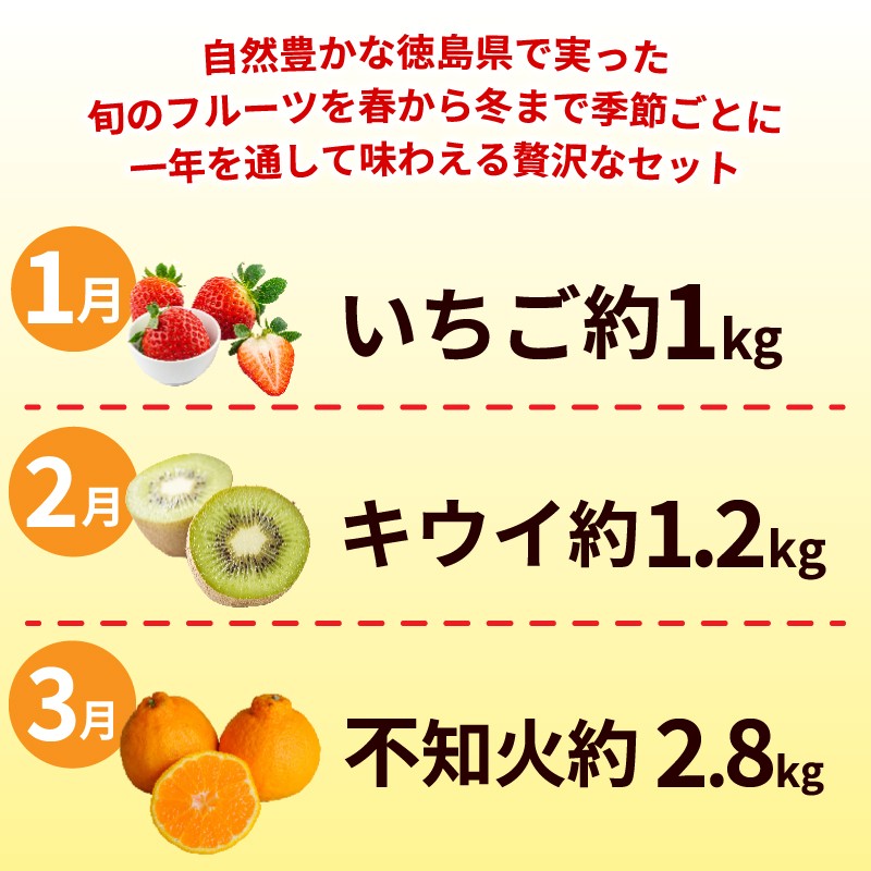 1月はいちご、2月はキウイ、3月は濃厚でコクのある不知火、