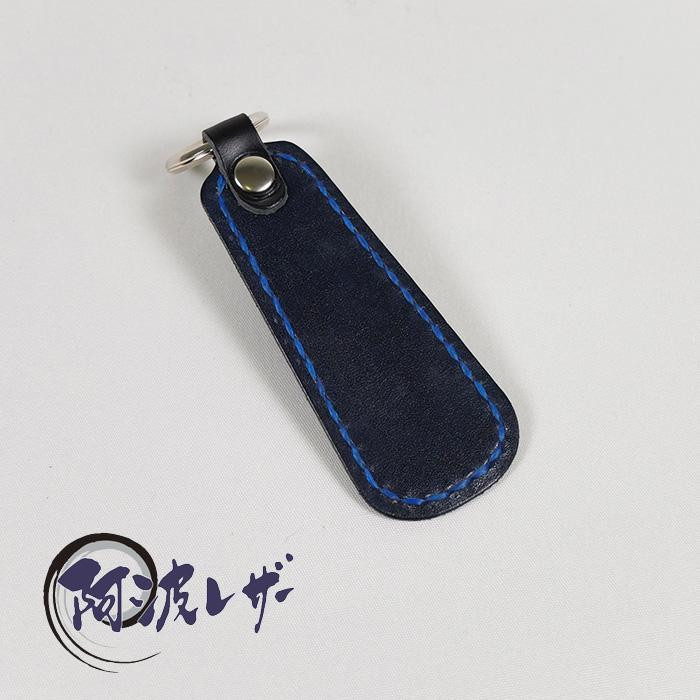 表側は徳島のすくも藍で染めた皮革で製作した靴ベラです。