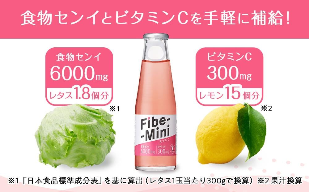 ファイブミニは、食生活で不足しがちな食物繊維を手軽にとり、おなかの調子を整える食物繊維飲料です。