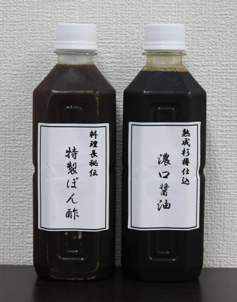 ぽん酢は、料理長特選の国産柚子を使用した風味豊かな万能調味料です。いろんなシーンでご利用ください。