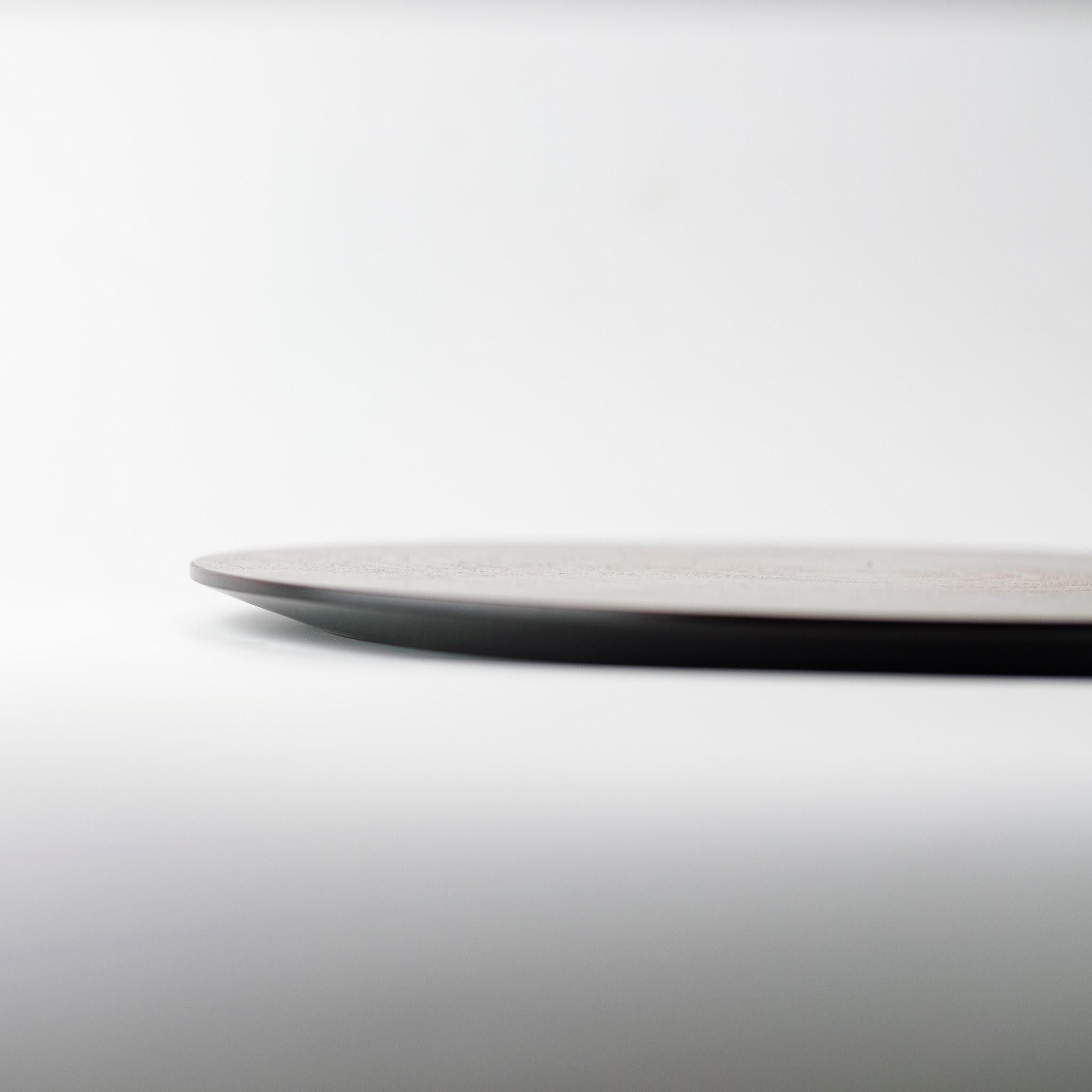 ツキ板の繊細な木目と漆の深みのある光沢が調和することで、独自の存在感を放ちます。私たちだからこそ実現できるこのプレートは、使うほどにその魅力を増すという漆ならではの特性を備えており、毎日の使い勝手のよさと長期にわたる耐久性を兼ね備えています