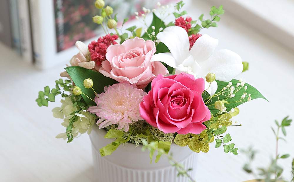 アレンジメントの魅力を引き立てる、シンプルで上品なFiNEオリジナルのギフトボックスに入っています。