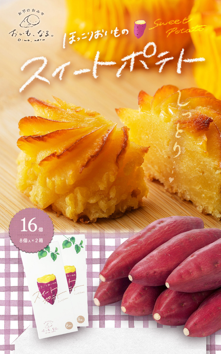 ほっこりなめらか、「道の駅くるくるなると」の大人気商品! ほっこりおいものスイートポテト 16個 ( 8個入 × 2箱 ) 個包装 鳴門金時 なると金時 さつまいも 芋 スイーツ お菓子 おかし 人気 スイートポテト 洋菓子 おやつ ギフト 内祝い 出産 お歳暮 プレゼント お土産 おみやげ 可愛い かわいい おしゃれ 徳島 鳴門