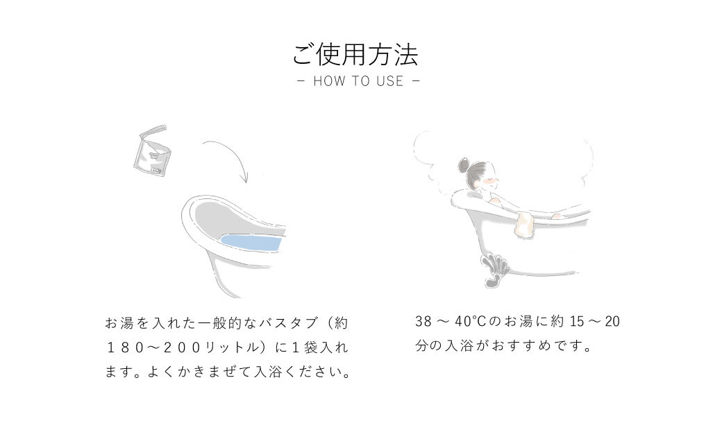 ビューティーディレクター・メイクアップアーティストの早坂香須子 氏とコラボレーションし、四季と月の満ち欠けをテーマに、純度 99.99% の高純度硫酸マグネシウム、クレイ成分、天然精油で作られた spring、summer、autumn、winter の4つの香りの国産入浴料です。