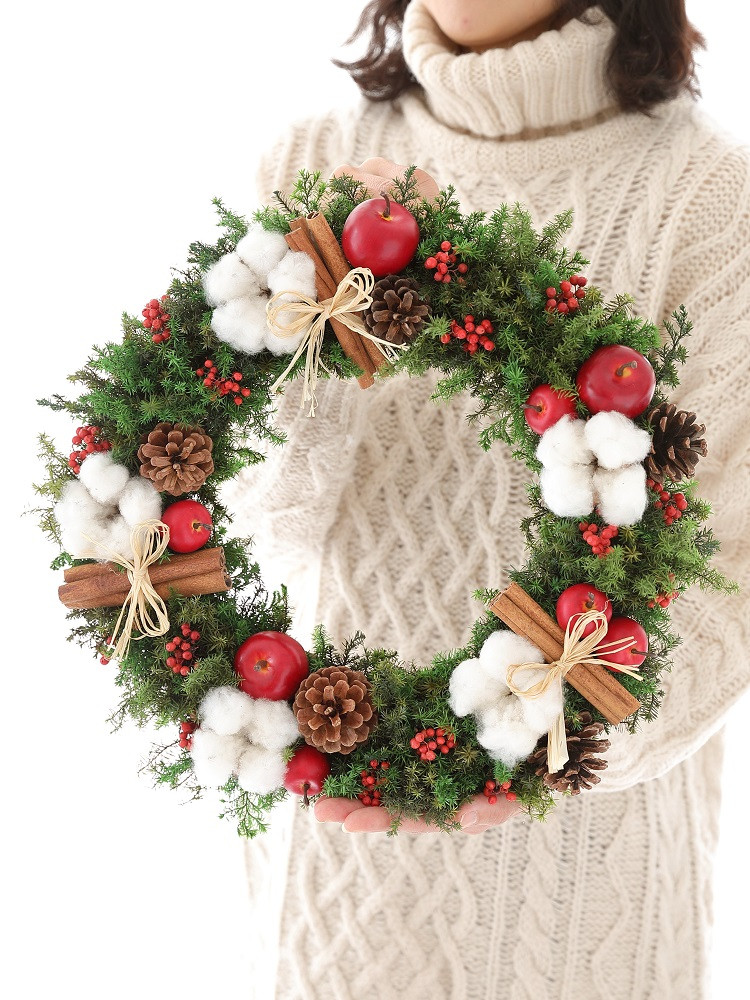 流行に左右されない本物のクリスマスリースとして長年愛され続けています。こちらは迫力の35cm。