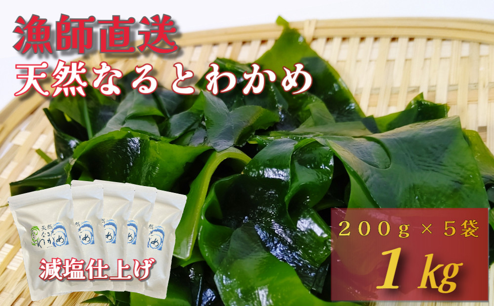 鳴門の恵み、漁師の伝統が詰まった逸品 【漁師直送】天然なるとわかめ 200g×5袋 【 減塩 】 鳴門わかめ わかめ 天然 国産 希少 人気 湯通し 塩蔵 味噌汁 みそ汁 スープ お刺身 サラダ 酢の物 和え物