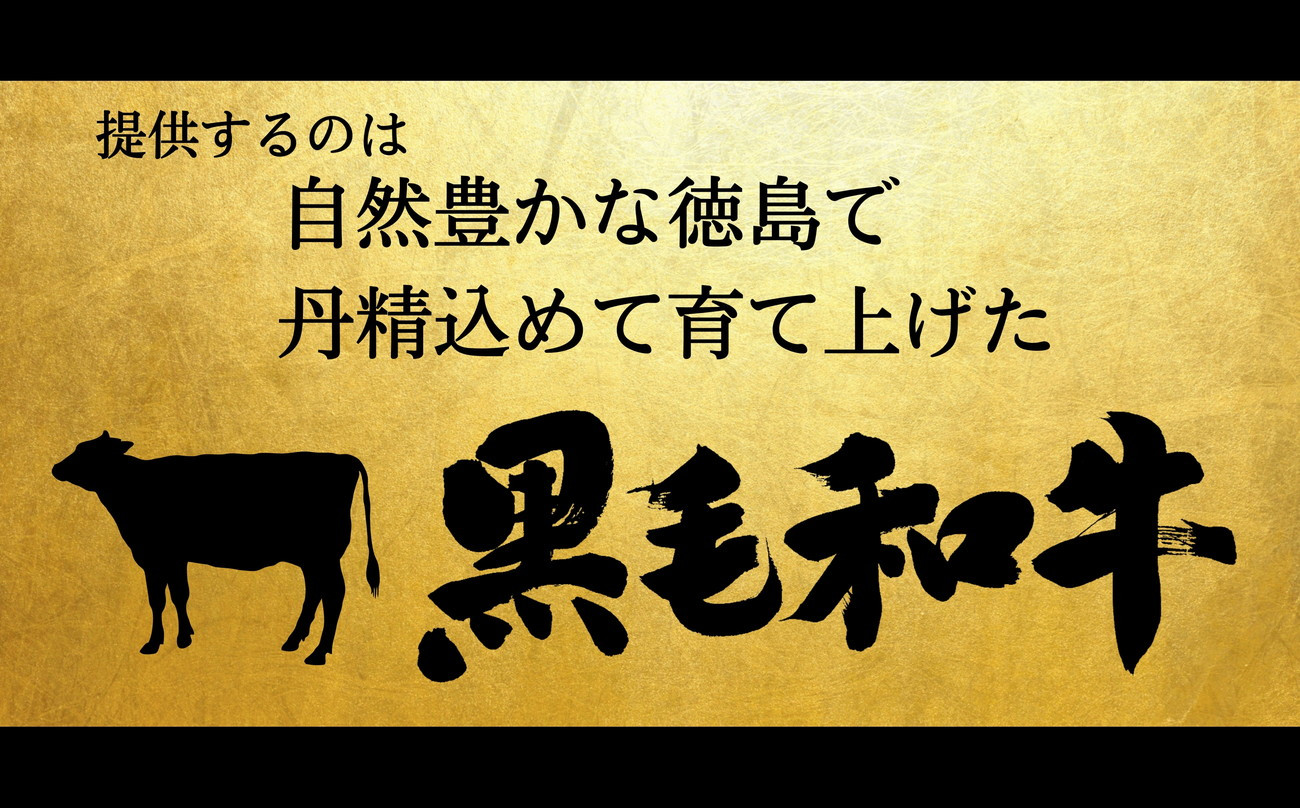 黒毛和牛は、自然豊かな徳島で丹精込めて育て上げ、安心・安全・美味しさを追求し厳選した黒毛和牛のみを1頭買いしております。