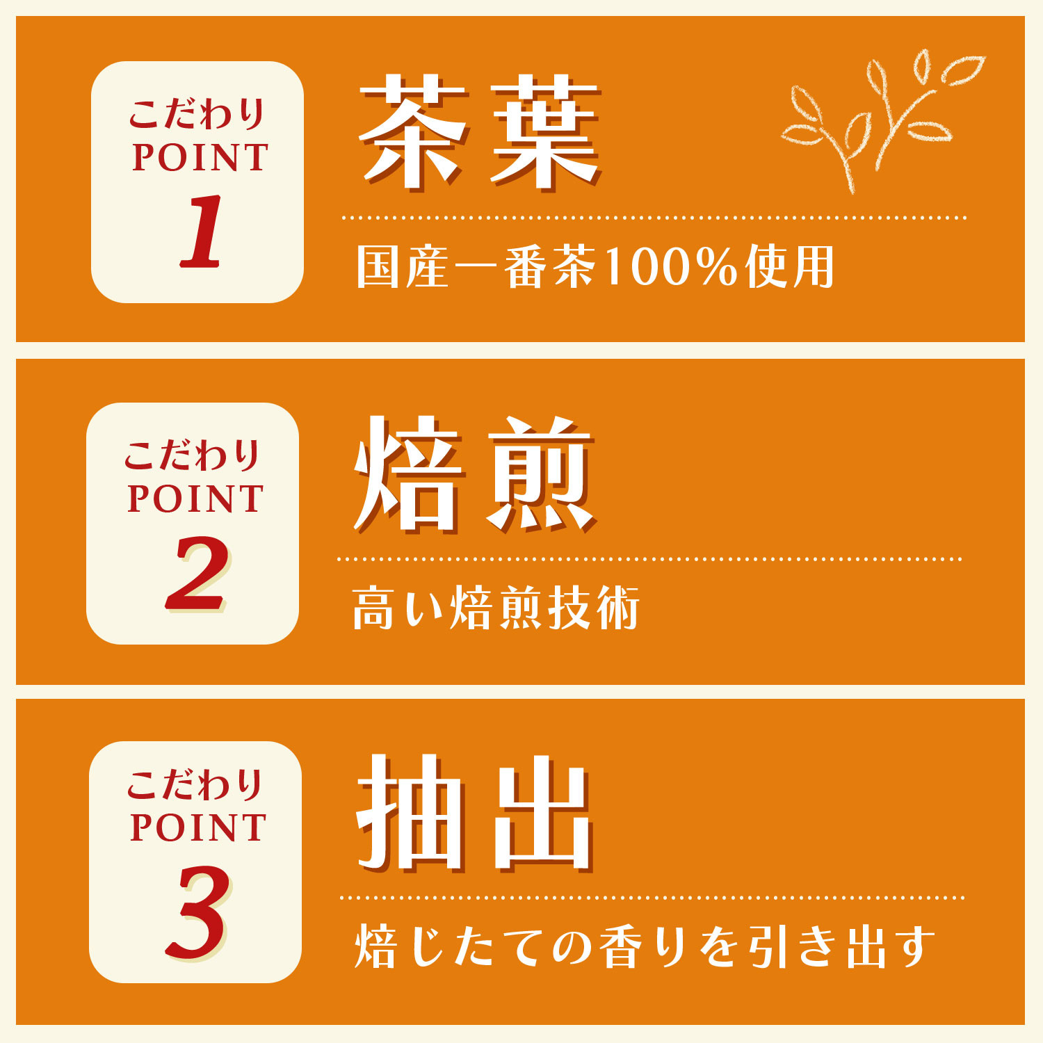 甘い香ばしさの余韻とやさしい味わいが楽しめるほうじ茶飲料に仕上げました