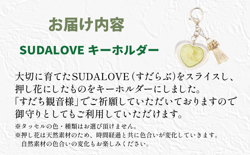 大切に育てましたSUDALOVE(すだらぶ)をスライスし押し花にしたものをキーホルダーにしました。タッセルを付けてオシャレも楽しんでいただけます。