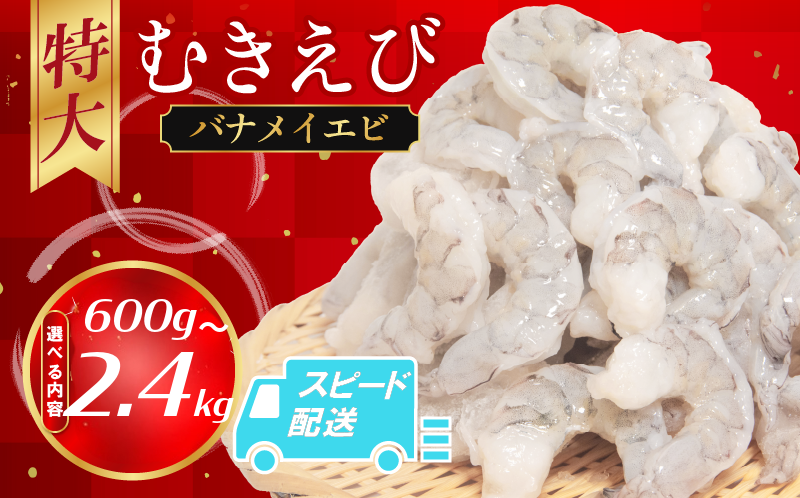スーパーでは見られない超特大むきえび!! むきえび バナメイ 600g~2.4kg 冷凍 背ワタなし 保水剤不使用 下処理済 エビ 海老 人気 殻 むき 時短 便利 簡単調理 特大 大型 大容量 えび むきえび ムキエビ むきエビ 海老 簡単調理 エビマヨ エビチリ 【北海道・東北・沖縄・離島への配送不可】