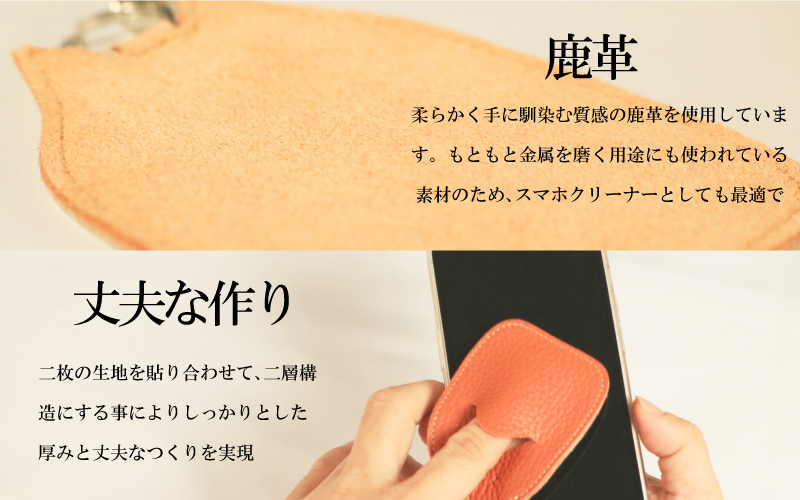 革工房 Naoto+mのオリジナルキャラクター「nuuさん(ヌーさん)、ヌネコさん、ヌサギさん」のスマホクリーナーのキーホルダーです。
