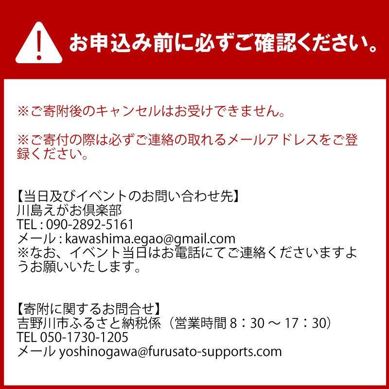 開催時間:集合時間の詳細は、ご寄附完了後にメールにてご案内いたします。