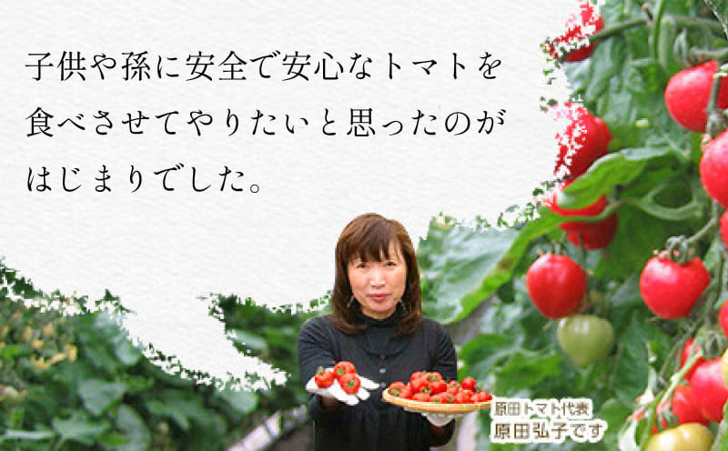 トマト作りをしていた一人の母が、子どもや孫に安全で安心なトマトを食べさせてやりたいと思ったのがきっかけで甘みをとことん追求・研究したフルーツトマトです。