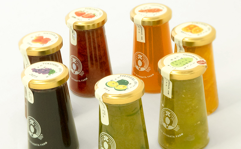 阿波市の特産認証品「美~ナス(白茄子)」のジャム(灰汁の少ないトロトロのナスにすだち果汁とラム酒を加えた爽やかな風味とナスとは思えないまるで洋梨のような食感です)やいちご・柚子など、色鮮やかな季節の野菜・果物を、余計なものは一切使用せず、てん菜糖でじっくり煮つめただけの「優しいジャム」です。