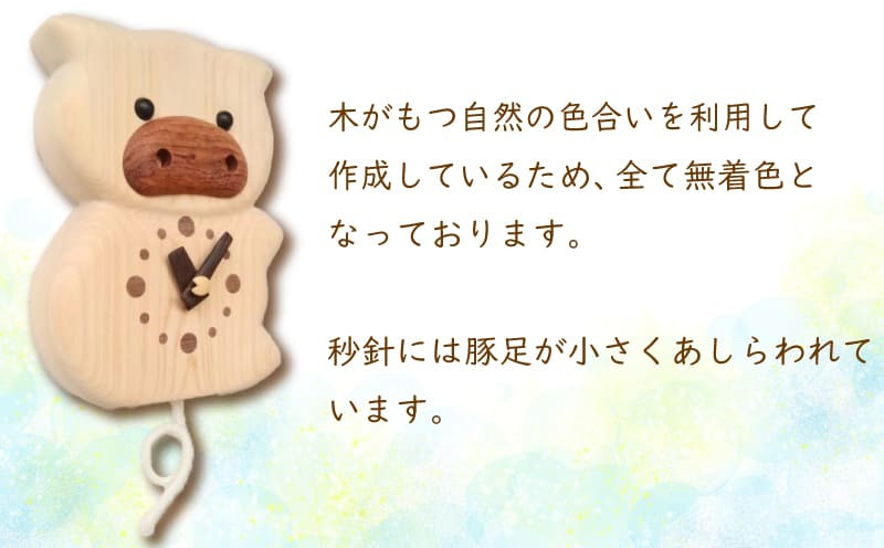 お気に入りの動物と、ひとつの時を刻む 時計 木製 木の時計 振り子時計 壁掛け時計 無着色 無塗装 可愛い ペット 豚 ブタ オリジナル 手作り ハンドメイド 日用品 雑貨