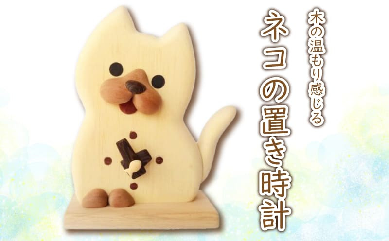 お気に入りの動物と、ひとつの時を刻む 時計 木製 木の時計 置時計 無着色 無塗装 可愛い ペット 猫 ネコ オリジナル 手作り ハンドメイド 日用品 雑貨