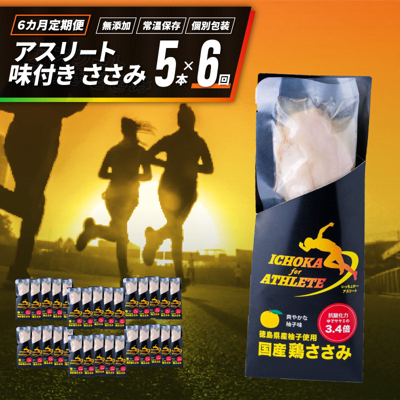 スポーツ や ダイエット にもってこい~ 低脂肪 アスリート ささみ をお届け~ 定期便 6回 ささみ サラダチキン 5本 アスリート スポーツ トレーニング 国産 鶏肉 鳥肉 とりにく 鶏 とり チキン チキンバー タンパク質 プロテイン ダイエット 健康 美容 トレーニング ジム スポーツ 非常食 常温保存 防災グッズ 保存食 備蓄 防災 ギフト プレゼント 贈答 お取り寄せ グルメ 送料無料 徳島県 阿波市 有限会社阿波食品
